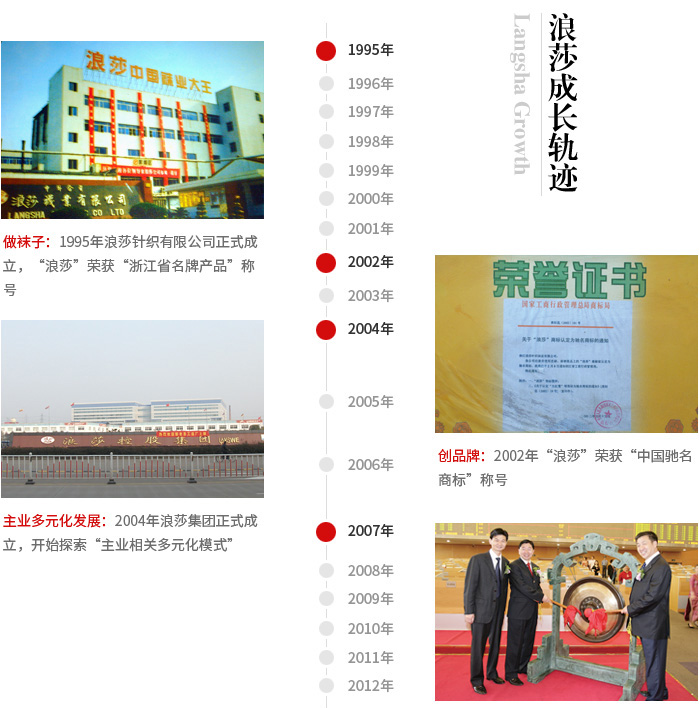 浪莎成立于1995年,是目前國(guó)內(nèi)襪子專業(yè)生產(chǎn)企業(yè),也是行業(yè)內(nèi)響亮的品牌企業(yè)。2008雖是金融風(fēng)暴引發(fā)的企業(yè)困難之年,但浪莎還是以40%的業(yè)績(jī)?cè)鲩L(zhǎng),實(shí)現(xiàn)銷售額5億美金。經(jīng)過(guò)二十一年的發(fā)展。在國(guó)內(nèi),人們提起襪子,就會(huì)想到浪莎,想起浪莎,就會(huì)想到那句經(jīng)典的廣告詞:浪莎,不只是吸引!