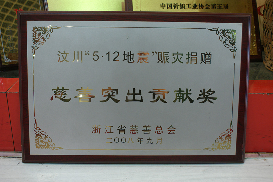 汶川“5.12”地震賑災(zāi)損贈慈善突出貢獻獎