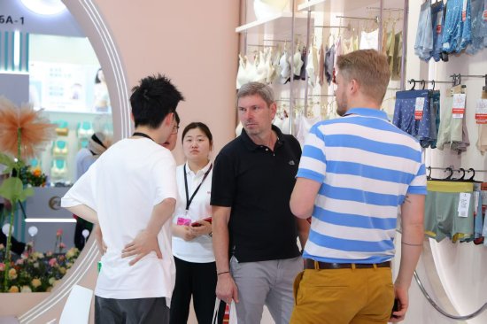 本次參展,浪莎聚焦三大目標:強化品牌高端形象、展示智能化新品、拓展海內外合作伙伴。據浪莎控股集團有限公司營銷總監徐宏介紹,在產品端,浪莎以兩大創新方向引領行業:一是以“科技賦能”,全新推出的智能溫控發熱內衣,采用自適應材料實現動態調溫,精準滿足戶外運動、商務通勤等場景需求;二是進行“綠色時尚轉型”,推出環保系列產品,并聯合非遺工藝大師打造文化IP系列,將傳統刺繡與現代設計融合,傳遞國潮美學。