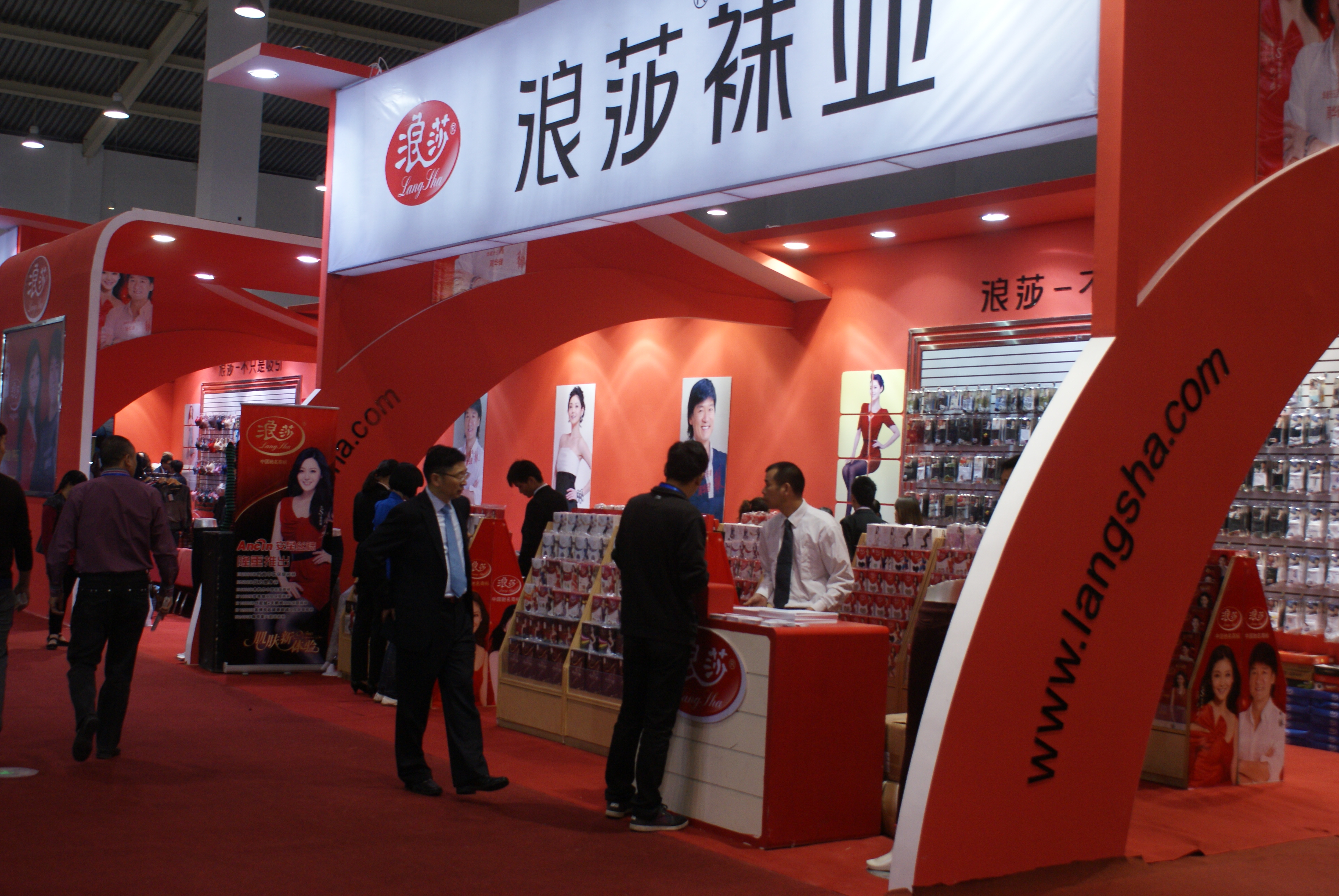2012年10月21日,浪莎集團參展義烏市小商品博覽會,拱形設計的展位自然流暢,橘紅色的基調與浪莎紅的概念和諧統一。