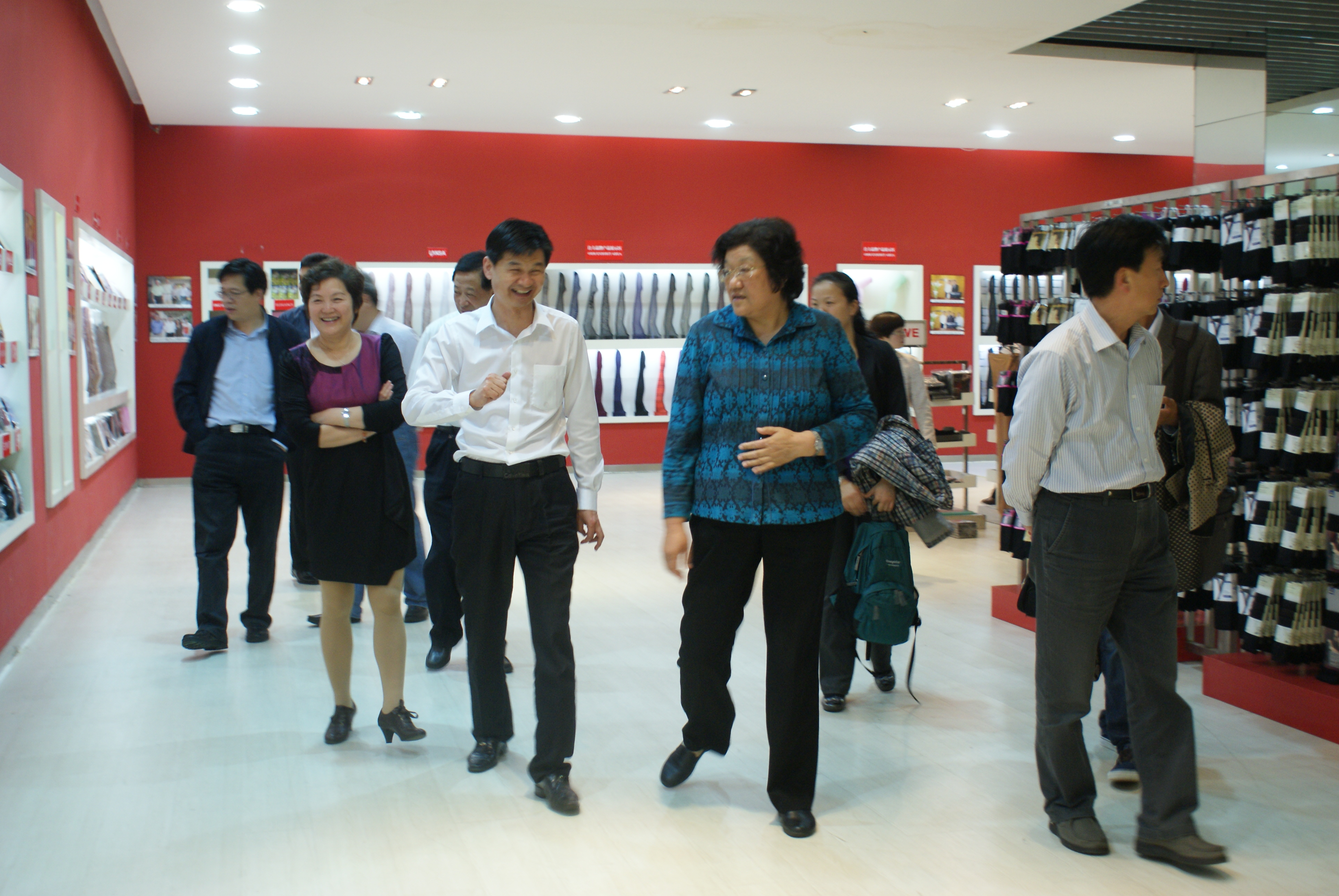 隨后代表們來到外貿展廳,交談中大家都一致認識到品牌的重要性,并祝賀浪莎在國內外取得的巨大名氣。最后代表們隨同翁總裁參觀了樓上的生產車間,對襪子的生產有了更進一步的了解。