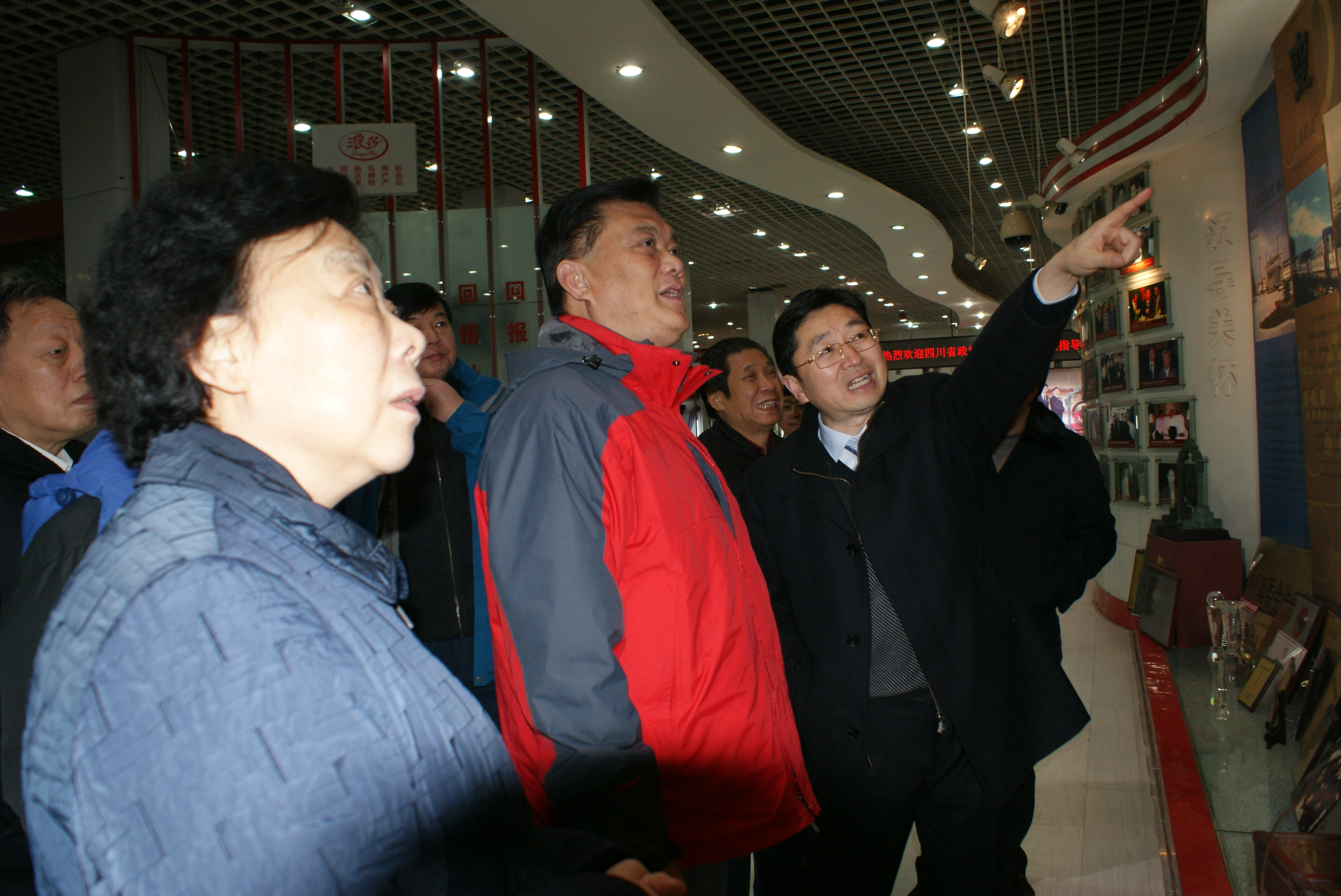 隨后解主席來到了浪莎產品展示中心,作為全國工業旅游示范點,展示中心不僅陳列展示了浪莎企業文化和浪莎產品,還對義烏人文及小商品城的變遷進行展示宣傳,吸引了來訪領導的駐足觀看品讀。在座談會結束后,解主席一行啟程離開,臨行前解主席與翁董事長合影留念。