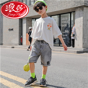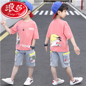- 浪莎童裝兒童男童短袖套裝2021新款夏裝中大童兩件套寶寶卡通套裝