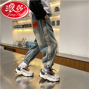 - 童裝男童洋氣邊扣牛仔長褲兒童春夏褲子2021春裝新款中大童韓版潮