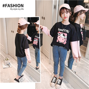 - 女童春夏2021新款洋氣潮流假兩件白色長袖T恤休閑時髦兒童上衣女