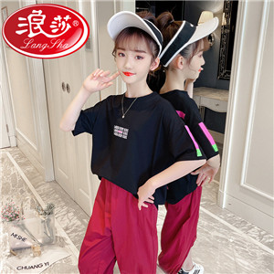 - 浪莎女童夏裝2021新款網紅洋氣兒童中大童短袖T恤女孩童裝夏季潮