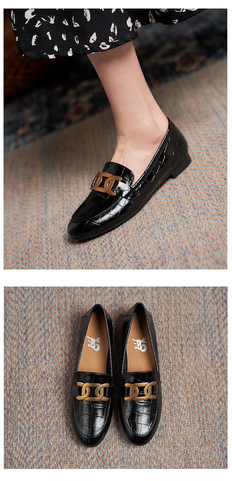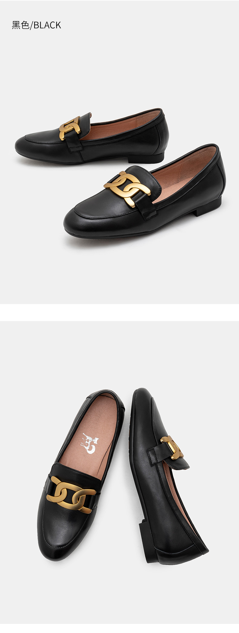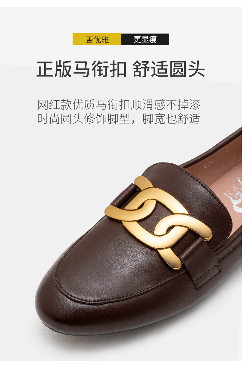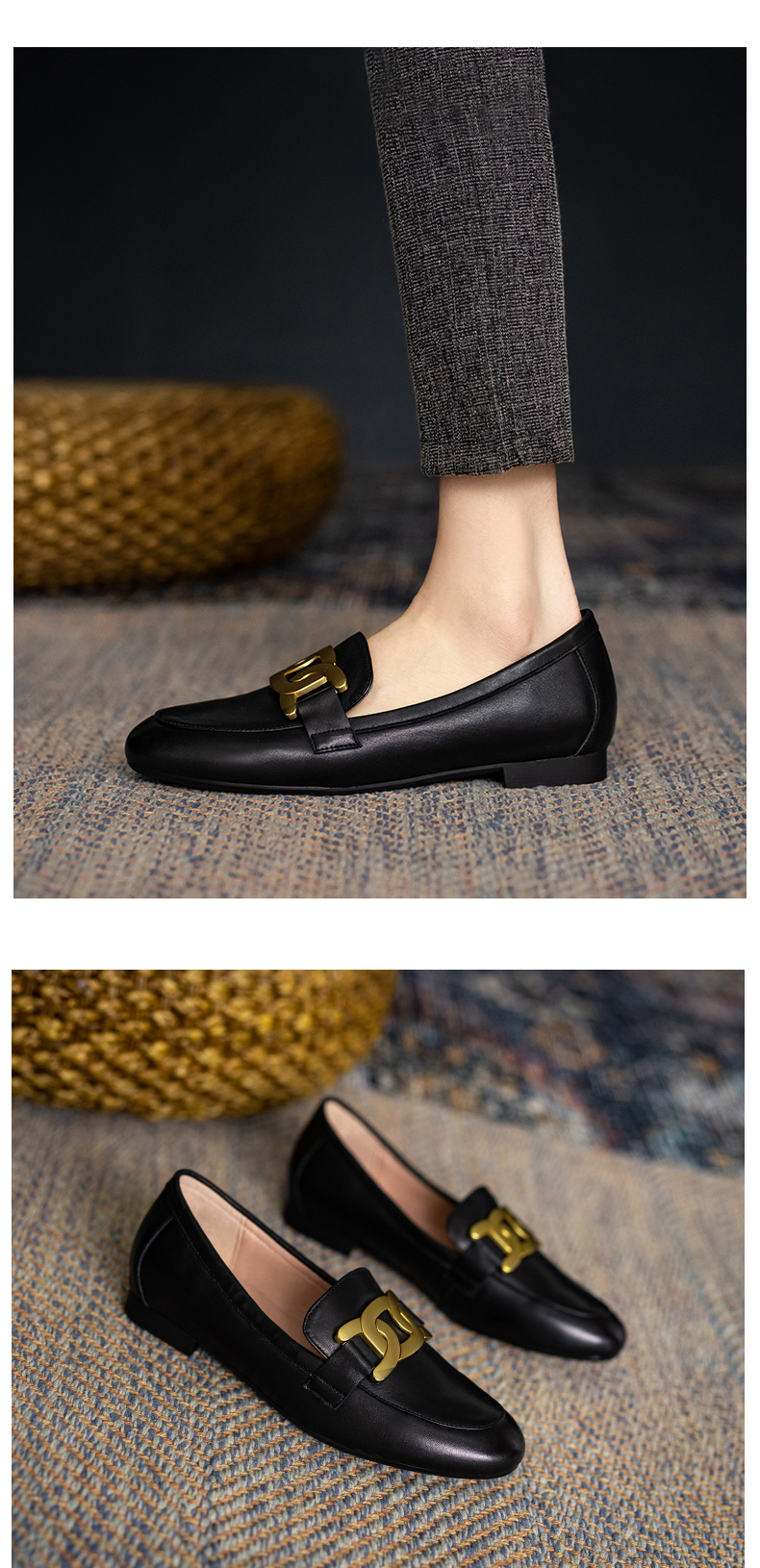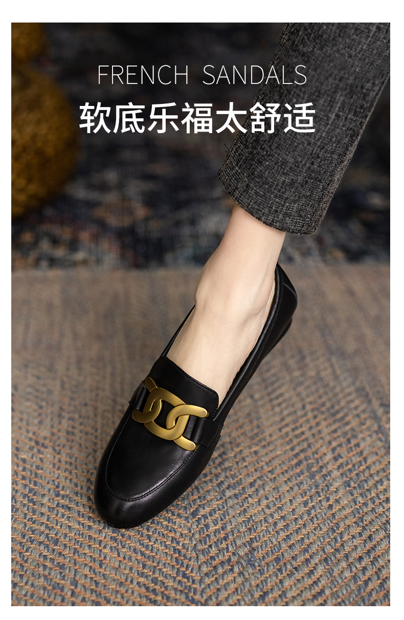樂福鞋女真皮2021爆款鞋子春英倫風(fēng)圓頭單鞋一腳蹬黑色平底小皮鞋