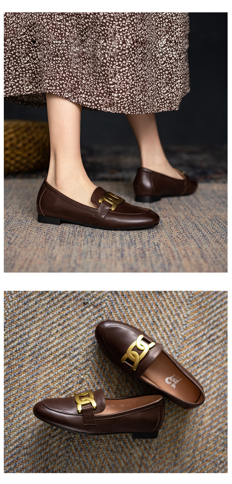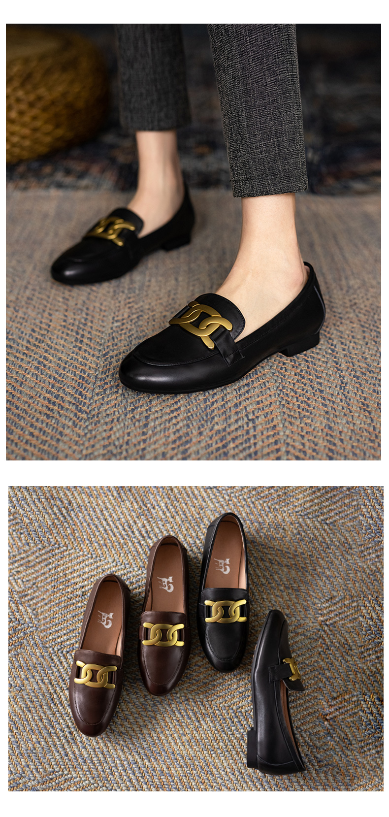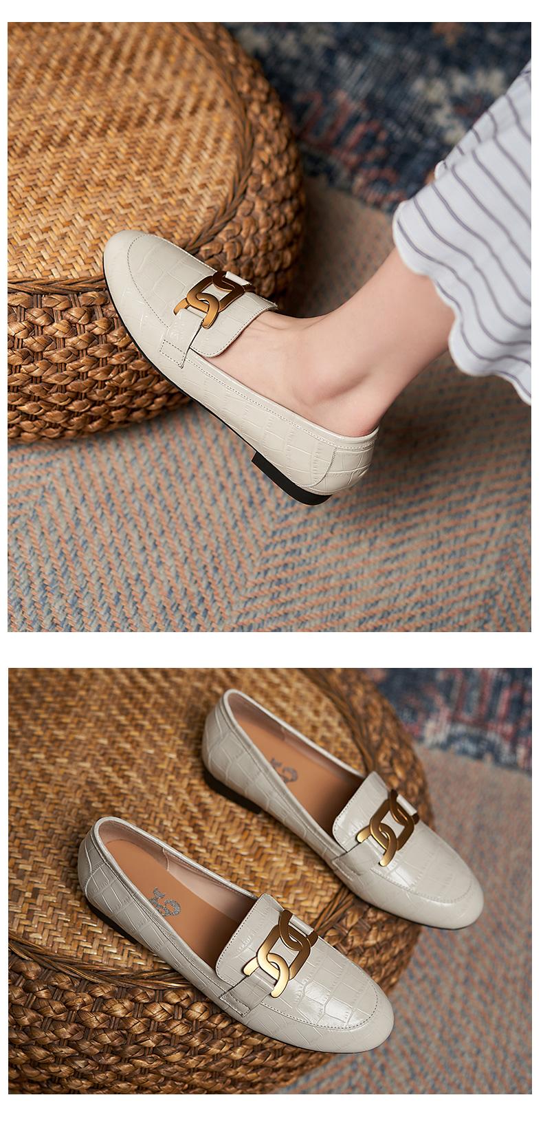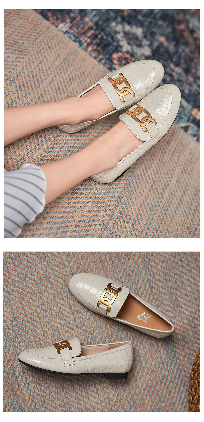 樂福鞋女真皮2021爆款鞋子春英倫風(fēng)圓頭單鞋一腳蹬黑色平底小皮鞋
