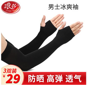 - 浪莎(3雙裝)冰袖 男 夏季防曬套袖男戶外遮陽防曬手套騎行防曬袖套LSSQ-A045-466三雙裝黑色露指款