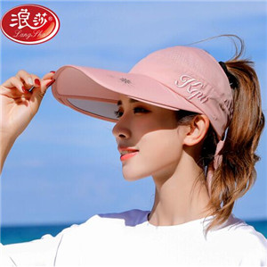 - 浪莎遮陽帽子女夏天防曬帽空頂騎車遮臉百搭太陽帽LSSQ-A045-2599藕粉
