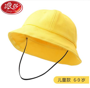 - 浪莎兒童遮陽帽夏防曬帽帶防風繩漁夫帽可折疊寶寶沙灘帽LSSQ-A045-2638 黃色 頭圍54cm[6歲-9歲】