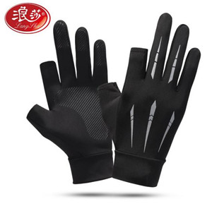 - 浪莎防曬手套男開車防滑速干透氣夏季薄款露指騎行手套男戶外釣魚手套LSSQ-A045-5055 黑灰色