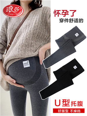 - 浪莎孕婦打底褲春秋薄款外穿九分托腹純棉小腳孕婦褲子春夏季春裝