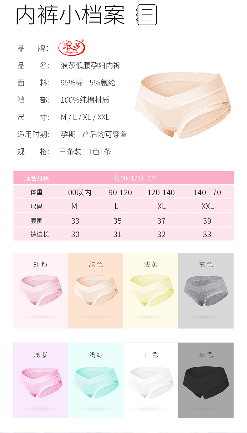 浪莎孕婦內(nèi)褲純棉孕中期孕晚期初期孕早期低腰產(chǎn)后月子大碼女內(nèi)衣