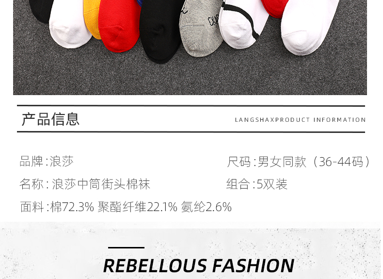 浪莎襪子男中筒襪歐美ins潮春夏季防臭女長筒襪籃球高幫運(yùn)動棉襪