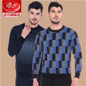 - 浪莎時尚加絨加厚保暖內衣套裝男士中年格子秋衣秋褲冬季打底防寒