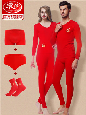 - 浪莎本命年紅色內衣內褲襪子結婚禮物屬牛秋衣秋褲男女士保暖套裝