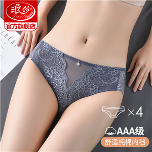 - 浪莎蕾絲內褲女士性惑春夏款純棉底襠性感無痕透氣鏤空三角短褲頭