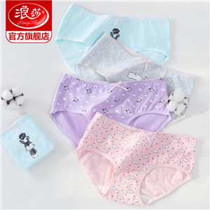 - 浪莎女士內褲女三角褲中腰春夏少女純棉面料透氣全棉日系女生褲衩